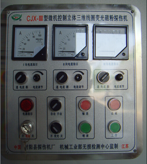 該機就是根據(jù)根據(jù)這個試驗原理設(shè)計制造的專用檢測設(shè)備。是我廠生產(chǎn)的低電壓、交流大電流三維線圈磁化器、機電一體化型固定臥式輸送式磁粉探傷設(shè)備,適用鐵路、航空、汽車、摩托車、內(nèi)燃機等行業(yè)形狀不規(guī)則的大、中、小零件的磁粉探傷,可發(fā)現(xiàn)零件表面和近表面因鑄造、淬火、磨削、疲勞等原因形成的微小裂紋,以及夾渣等極細微缺陷。