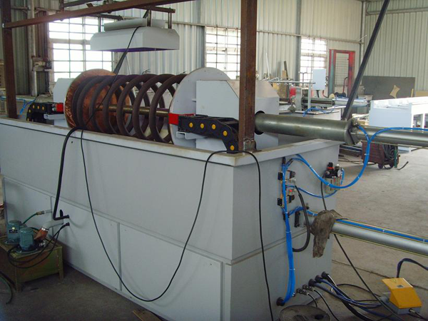 電源控制柜(包括:操作站、控制主板和主電源板等) 一套 主機(jī)(包括:周、縱向變壓器、縱向磁化器、周向夾緊磁化機(jī)構(gòu)、絲桿螺母極間距調(diào)整機(jī)構(gòu)、旋轉(zhuǎn)觀察機(jī)構(gòu)等) 一套 自動(dòng)噴淋磁懸液噴灑系統(tǒng) 一套 暗室系統(tǒng) 一套 穿棒磁化機(jī)構(gòu) 二套 LED紫外燈系統(tǒng) 一套 托架升降旋轉(zhuǎn)機(jī)構(gòu) 一套 二、探傷工件:彈簧。三、設(shè)備能力: 探傷節(jié)拍:20--35秒/件。四、本機(jī)設(shè)計(jì)制定標(biāo)準(zhǔn): <<磁粉檢測>> JB/T8290-2011國標(biāo)。五、主要技術(shù)指標(biāo)周向磁化電流(穿棒通電)AC:0—8000A(有效值)連續(xù)可調(diào),帶斷電相位控制(無漏檢)。縱向磁化磁勢(線圈)AC:0—20000AT(有效值)連續(xù)可調(diào),帶斷電相控制(無漏檢)。電極間距:0—1500mm。磁化原理:穿棒通電法。磁化方式:周向磁化、縱向磁化、復(fù)合磁化三種可靈活選用。使用環(huán)境:—10℃—+40℃,相對濕度≤80%。貯存環(huán)境:溫度—20℃—60℃,相對濕度≤70%。無腐蝕性氣體粉塵和強(qiáng)力高頻電磁污染。紫外線強(qiáng)度:距工件380mm處紫外線強(qiáng)度不少于4000μW/cm2。靈敏度測試:按中華人民共和國機(jī)械行業(yè)標(biāo)準(zhǔn)JB/T6065—92《磁粉探傷用標(biāo)準(zhǔn)試片》規(guī)定,以標(biāo)準(zhǔn)2號A型試片測試,顯示清晰。電源:三相四線,380V±20%,50HZ,約300A。檢查面:工件全部表面的裂紋等缺陷。退磁:AC20000—0(有效值)衰減式自動(dòng)退磁。剩磁:Br≤0.2mT。工件旋轉(zhuǎn)觀察速度:4-6rpm。動(dòng)夾緊:夾緊行程0-100mm。氣源氣壓: 0.4—0.8MP。磁化電源柜尺寸:620*500*1750,夾持裝置尺寸:3500*800*1400(不包括暗室)。設(shè)備重:1.8T。六、運(yùn)行程序:手動(dòng)和自動(dòng)二種。自動(dòng)程序?yàn)椋荷狭?-穿棒--噴液--夾緊穿棒磁化--轉(zhuǎn)動(dòng)觀察--退磁-縮棒--下料,整個(gè)過程均用小型工業(yè)PC控制。自動(dòng)程序可連續(xù)進(jìn)行。